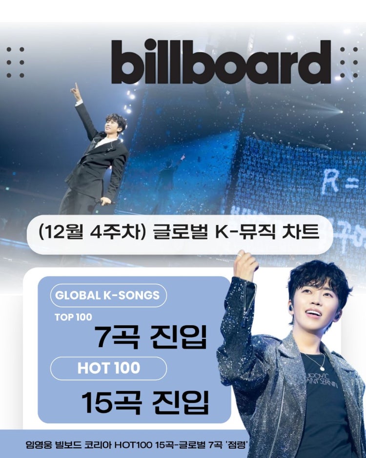 임영웅 빌보드 주간차트에서요 임영웅 빌보드 HOT100과 글로벌 차트에서 12월 4주차 결과는 어떻게 되는지