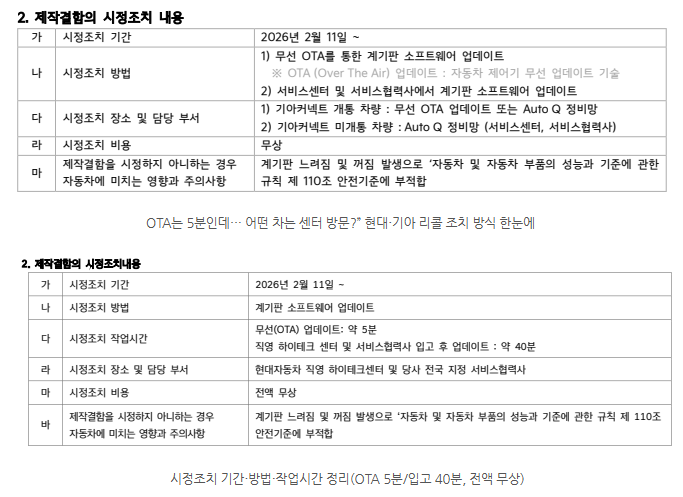 기아 계기판 리콜 이번 26.02.11 수요일부터 리콜을 진행한다고 하는데 제 차량은 k5 (OTA)입니다